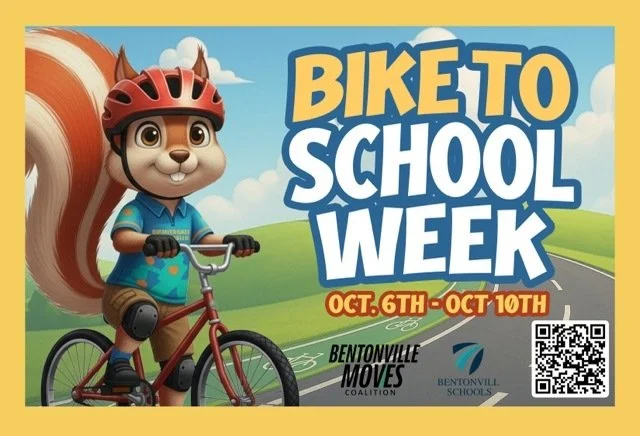 Mark your calendars for Bike to School Week, happening Monday, October 6th, through Friday, October 10th! Grab your helmets and join us for a fun and healthy way to get to school. This is a great opportunity to promote a more active, safer, and connected community here in Bentonville. Let’s ride together!