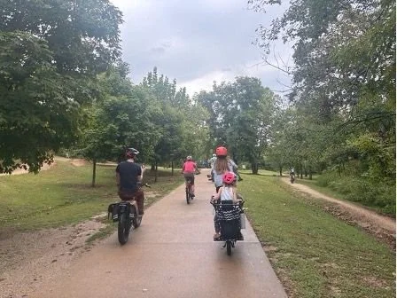 The Bentonville Cargo Community (@bentonvillecargobike) hosted monthly rides to bring together cargo bike owners and families pursuing a more bike-friendly lifestyle in Bentonville. The rides built community, encouraged everyday cargo bike use, and supported local cycling businesses through small raffles and giveaways. Despite one rainout, participation remained strong and continues to grow, helping foster connection and confidence among local riders.
